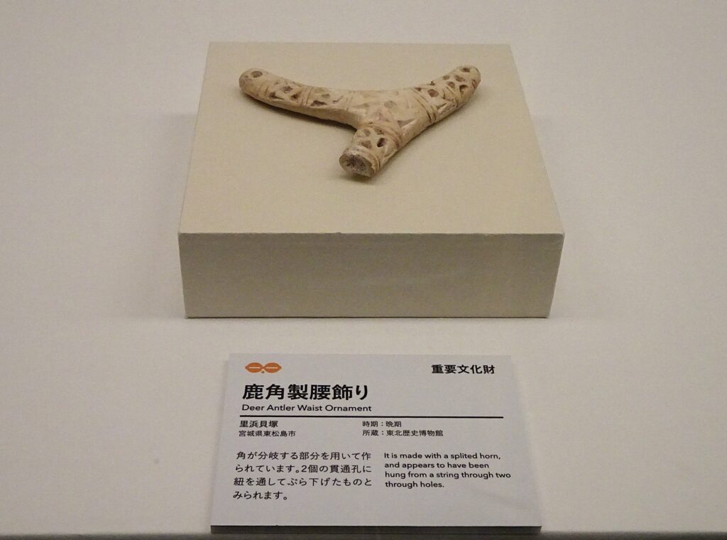 里浜貝塚(宮城県東松島市)、鹿角製腰飾り。重文てある。デザインがちょっと粋やん。