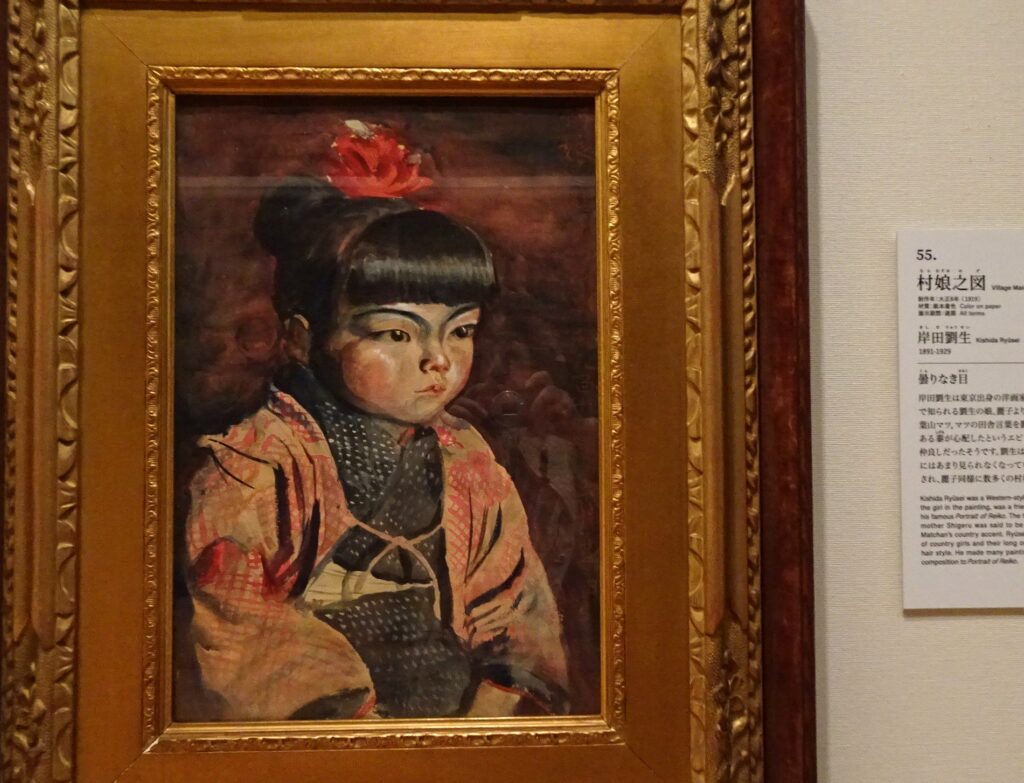 岸田劉生(1981ー1929)〈村娘之図)1919年。劉生の娘・麗子のお友達らし。曇りなき目。まっすぐに前を見つめる力強い目やね。