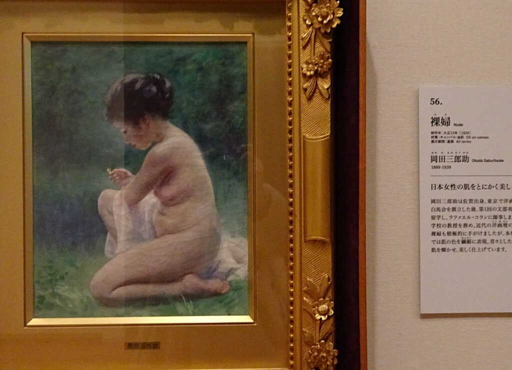 岡田三郎助(1869ー 1939)〈裸婦〉1924年。明治から昭和にかけて活躍した洋画家。女性像を得意とし、日本的な肌の美しさが特徴。日本の洋画ってちょっと暗~い感じのが多いなか、色白のおねぇさんを明るく描かはるしスキやわ。