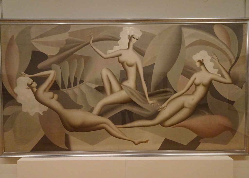 東郷青児(とうごうせいじ、1987ー1978)〈草上の三人の娘〉20世紀。独特にデフォルメされた女性像は、一目でこの人の作やとわかる。キュビズムとかピカソとかいろいろ学んで自分スタイルを確立するってスゴいことなんやろね。美人画の軌跡こんなとこかな。ちなみに、福田美近くの嵯峨嵐山文華館では、美人画の第2会場として「浮世絵と美人画の軌跡」展。それにしても寒~い嵐山に何しに来はんのやろ。数年前にできたテイクアウトコーヒー屋は行列。ただただ迷惑なだけだっせ。
