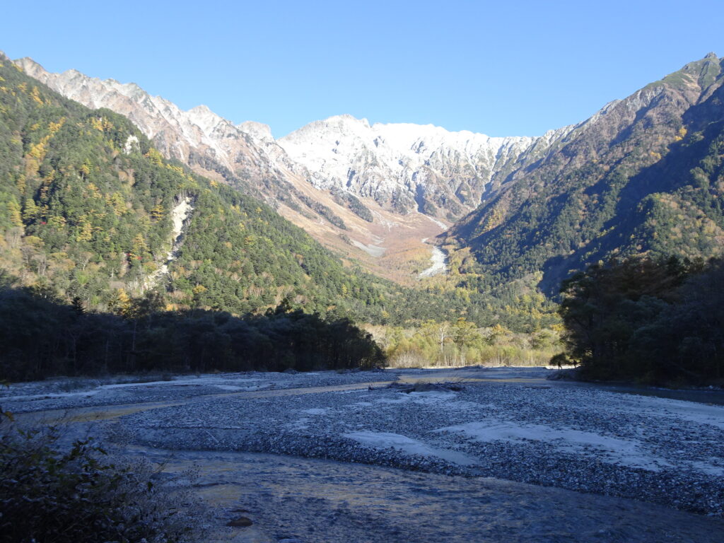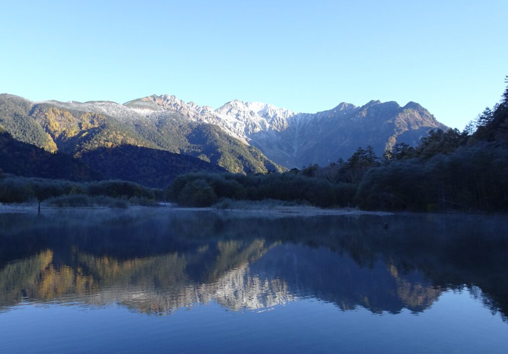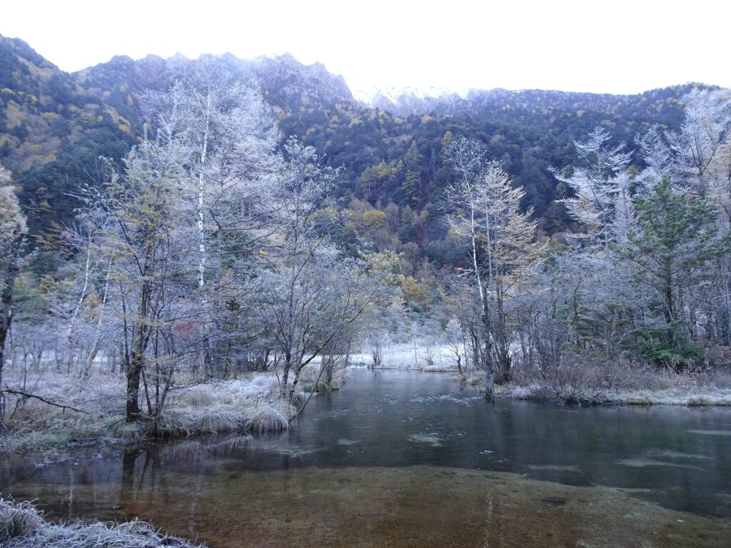 初冬の上高地、白。穂高連峰も初冠雪~京女のひとり旅96