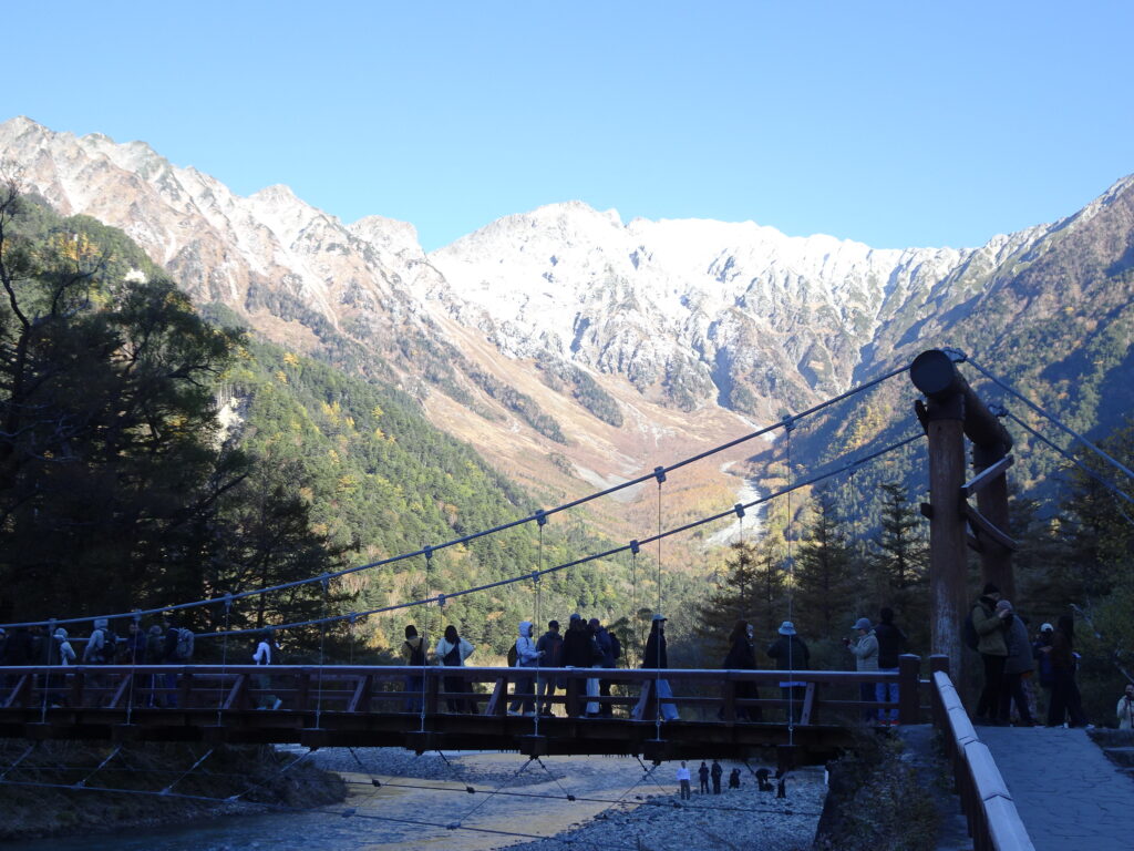 河童橋に近づいてきた。山頂白の穂高連峰が私を待ち受ける。