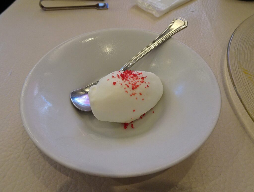 「プレゼントです」言うて若い女子スタッフがアイスクリーム持ってきはった。たぶん退店の催促。入店の際に後ろに予約あるんで時間制限言うてたけど、まだ30分程あったはず。「お皿下げましょか」「ゴメン、最後まで食べるし」のんびり本読みながら食べててほんの一口残してたバーグとビール、カッコつけずに最後まで、とっととキレイにたいらげました。もったいないやん。アイスも。。。デザートいらんし一品にしてるんやけど。「お茶漬けでもどうですか」ってなことは・・言わんわなぁ。京女でも言わへんし。優しい心遣いはきっちりいただきました。