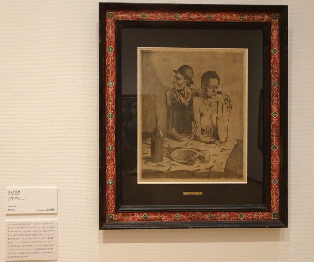 パブロ・ピカソ≪貧しき食事≫1904年。ピカソ初期の、青の時代。自身も貧しかった頃。この変遷もまた、おもろいピカソ。