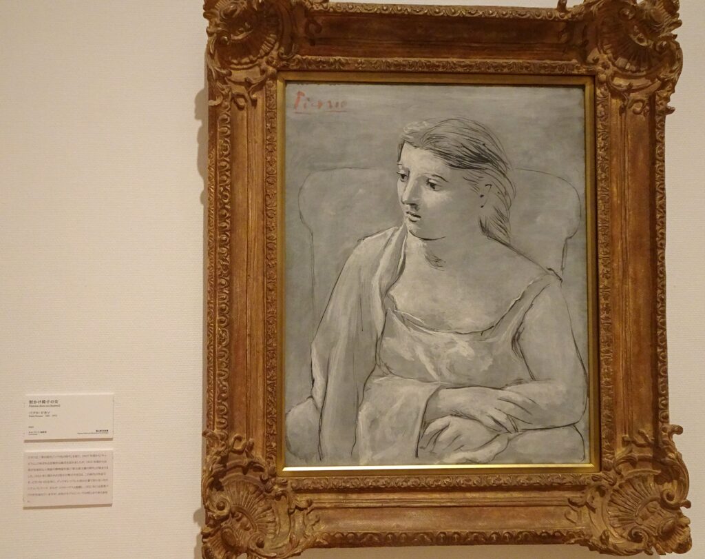 パブロ・ピカソ≪肘かけ椅子の女≫1923年。さかのぼって、最初のキュビズムから一転の写実。新古典主義の時代。普通のやさしい絵。安心感。
