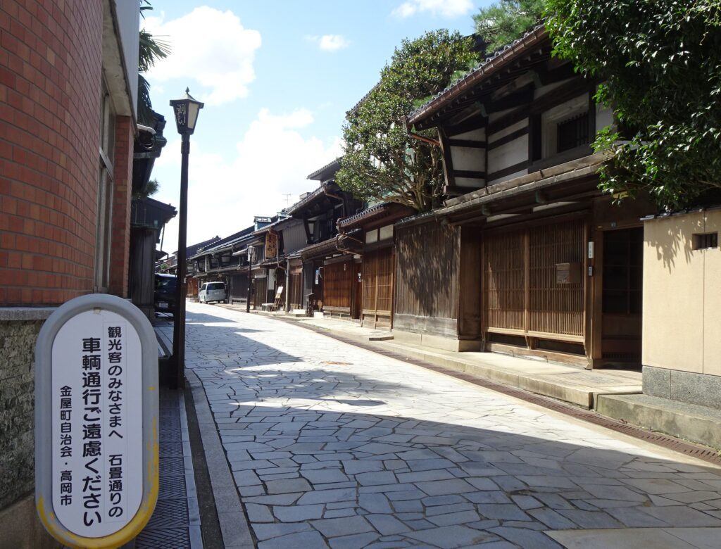 金屋町(かなやまち)。千本格子造り(せんぼんごうしづくり)の家々と石畳が風情。重伝建(重要伝統的建造物群保存地区)に選定されてる鋳物師町。1609年、加賀藩主・前田利長が、開町まもない城下町高岡の繁栄策として、領内から7名の鋳物師を金屋町に呼び寄せ、鋳物場を開設したのが始まり。この地に鋳物産業が根付き、高岡鋳物発祥の地となり、高岡銅器産業の中心として大いに栄えた。着々と加賀100万石への道・・や、ない。石高は前田はんが関ケ原で東軍に就いたご褒美プラスやもんね。ともあれ、500mほどの美しいたたずまい。