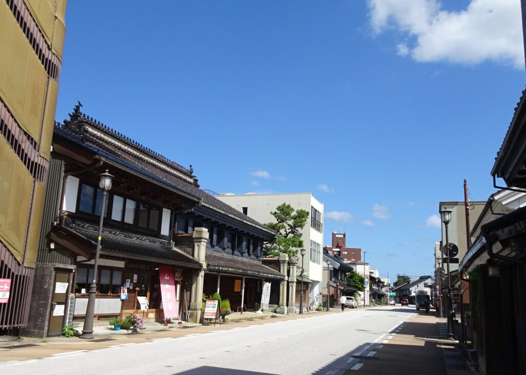 あんまし変わらへん。要は「蔵(くら)」土蔵造りが並ぶ筋ですわ。加賀藩主・前田はんが造らはった商人町。江戸から明治期には物資が集まる商業活動の中心地やったとこ。鋳物師の金屋町にも近い。1900年の大火の復興で、防火構造の土蔵造りに建て替わったらし。なんせ蔵やし、どれもデッカイ。お金持ちが多かったんやねぇ。道も広いしカメラに納まりきらへんかった。というわけで、金屋町に着する頃には、カラダもやけど情報量も多すぎてヘロヘロでした。