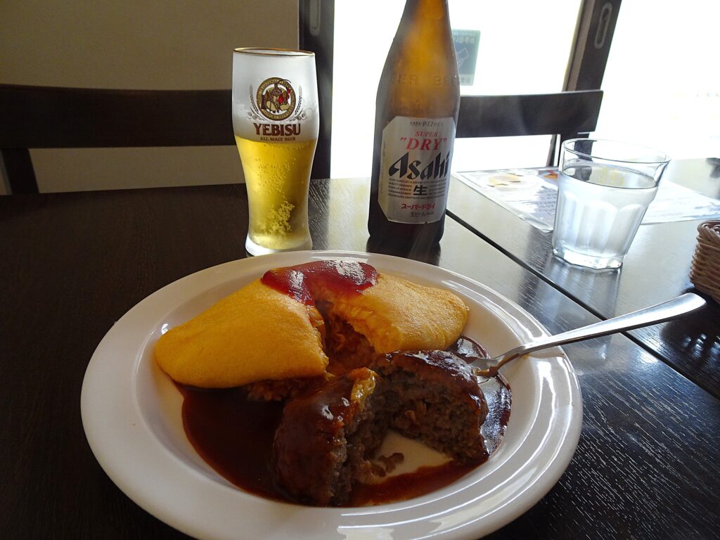 肉詰まっててハンバーグもうまいっ。ケチャップオムライス食べたなんねん。「蘭亭」ふわっとろ~オムライス・近江黒毛和牛100%ハンバーグのせ。何度かリピートしてるけどバーグのせは初めて。ビールランチしてる時は、近場でも泊の旅。京都まちなかではランチしーひんから、外食したなったら旅に出る。今回も、お気に入りの米原のホテルに車置いてJRで長浜来た。