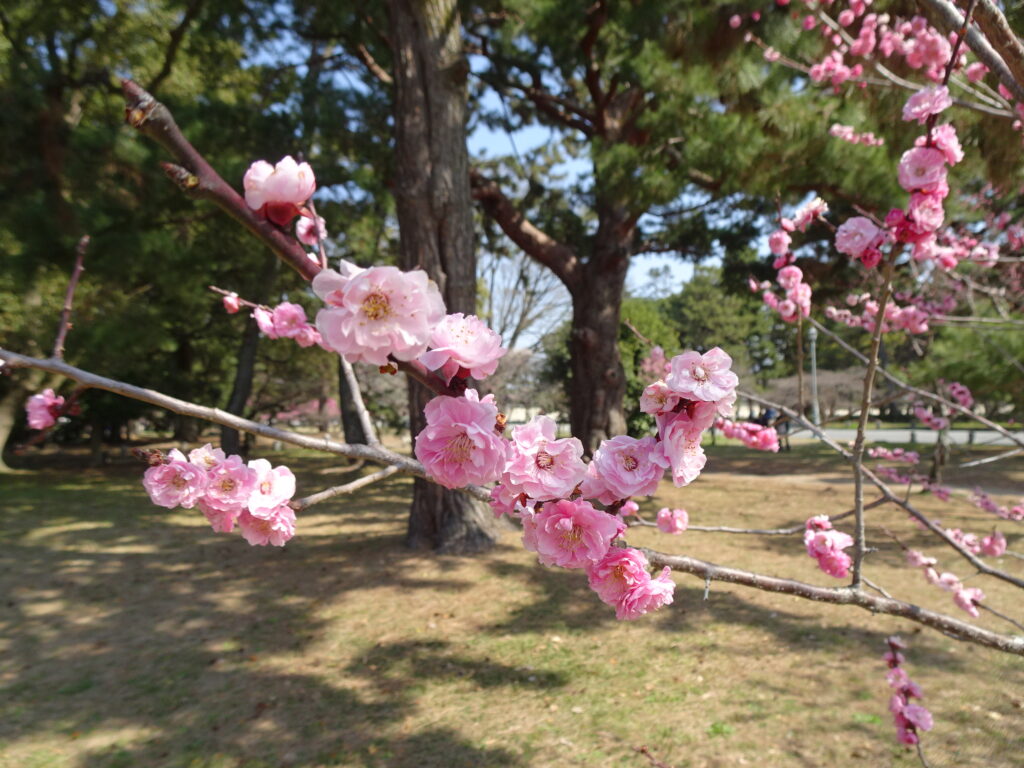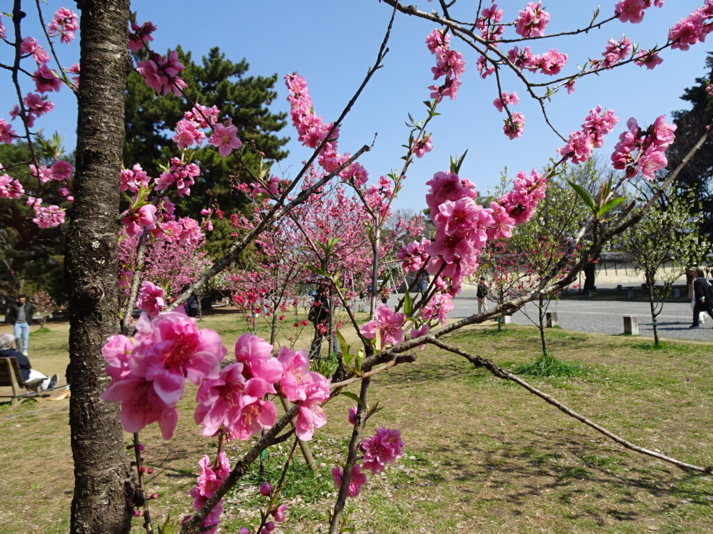 御所の桃林。お花がちょっととがってる桃の花。梅の花が終わるころから、結構長いこと咲いてる。
