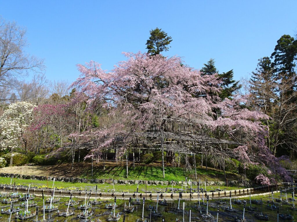 ちょっと角度を変えて・・って、ほぼ一緒。これしか撮りよーがない狭い場所に、園内一の大しだれがありますねん。花見もできひん。府庁職員やってるとき、植物園でなんやったかの政策的記念イベントの打ち合わせに出向いたら、「うちは研究施設でイベント会場やありません」言われた。どうりで愛想ないわ・・言わへん言わへん。あっそーですか、に抑えた自分をほめてあげたい。ハハッ。名物園長とのお散歩企画が人気になるまでは、入場者減少で閉園の危機やったよーな。。。ちなみに、この大しだれは円山公園の「祇園しだれ桜」の姪にあたる、エドヒガン由来の桜らし。研究してはんのやろね。