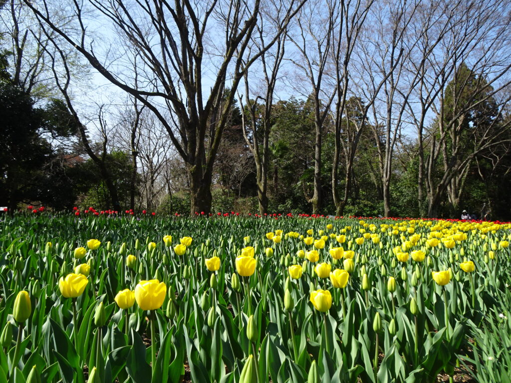気を取り直して反対側。咲き始めのソメイヨシノとのコラボショット。この頃の花は活力があってえぇね。けどこのソメイヨシノのエリアはクセモノ。両脇にずらーっと食べもん屋のテント。情緒もへったくれもない状態。早朝だけは営業してへんのがせめてもの救い。写真も撮ったし、早よ葉桜になってくれんかなぁ~~。