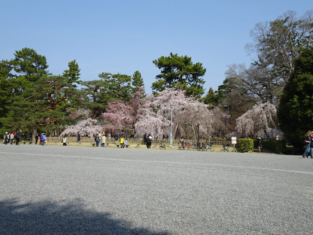 続いて、京都御所(ごしょ)のしだれ桜群。
