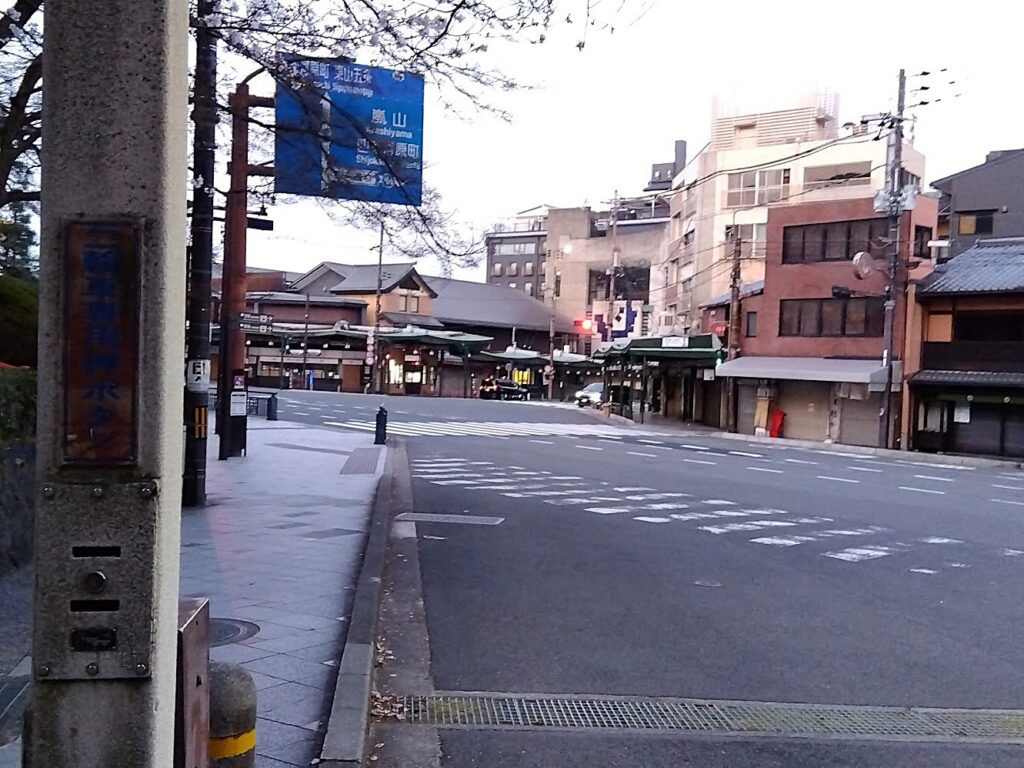 駐車場出たら「祇園」交差点。東大路の左の道に南向きに停車。出庫を感知するらしくて、写真の前方「赤信号」が青なったら進めるんやけど、なんと5秒。右折して四条通行こかなぁて、走り出したら横断歩道あたりでもう黄色。うっそー行かれへんやん、で、思わずそのまま東大路を南下。あとで調べたら青5秒やと。時速何キロで走り抜けろっちゅうねんと翌日リベンジして、交差点を四条通へ。けどやっぱ、常識速度やったし交差点半分も行かんうちに赤に変わってしもた。早朝やし人も車も少ないけど、祇園石段下なんていっつも人だらけやで。どーいうつもりの走らせ方なんかよーわからん交差点っスわ。くれぐれも祇園で暴走することのないよーにと、京都市民からご忠告。以上、京のお花見でした。